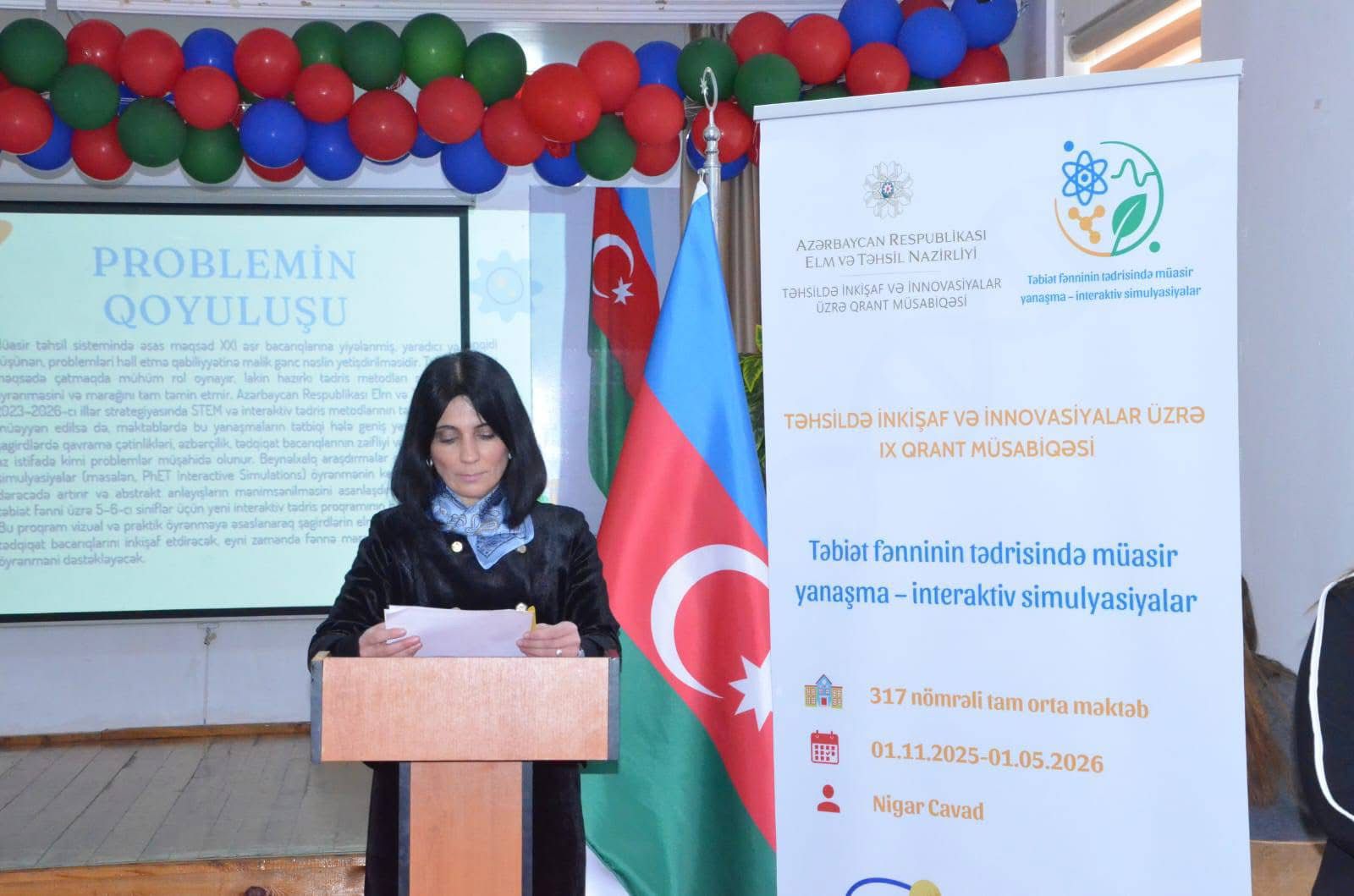 Daha sonra layihə rəhbəri Nigar Cavad “Təbiət fənninin tədrisində müasir yanaşma-interaktiv simulyasiylar” layihəsinin məqsədi,vəzifələri və nəticəsi haqqında tədbir iştirakçılarına geniş məlumat verdi.Layihə rəhbəri Nigar Cavad qeyd etdi ki, bu layihənin əsas məqsədi şagirdlərə təbiət fənnini interaktiv və maraqlı şəkildə öyrətməkdir. O vurğuladı ki, interaktiv simulyasiyalar şagirdlərin təcrübə yolu ilə öyrənməsini asanlaşdırır, onların analitik düşünmə bacarıqlarını inkişaf etdirir və öyrəndiklərini real həyatda tətbiq etməyə imkan yaradır. Nigar Cavad əlavə etdi ki, layihə həmçinin müəllimlər üçün yeni tədris metodlarını sınamaq və təcrübə mübadiləsi aparmaq imkanı verir.